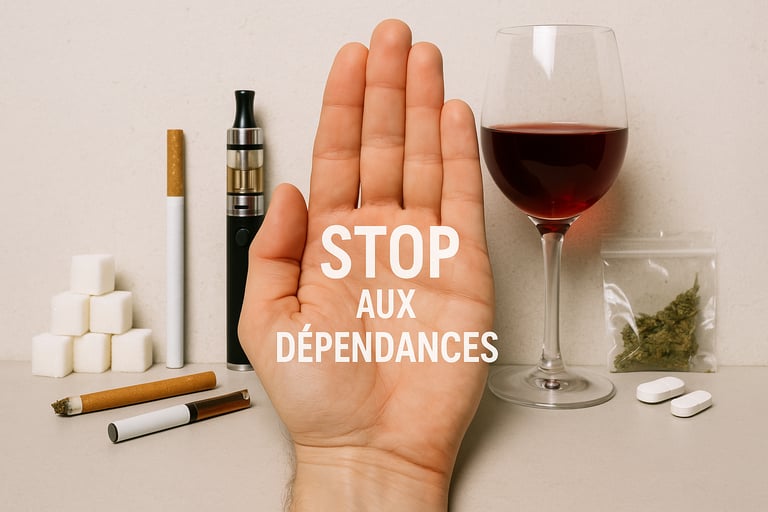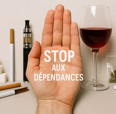Pour quelles addictions? : Tabac, vaporette, sucre, alcool, drogues (haschich, cocaïne, héroïne